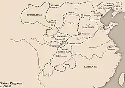 After overthrowing their previous overlords,[12] the Yuezhi, the Xiongnu became the dominant power on the steppes of East Asia, centred on the Mongolian Plateau. The Xiongnu were also active in areas now part of Siberia, Inner Mongolia, Gansu and Xinjiang. Their relations with the Chinese dynasties to the south-east were complex—alternating between various periods of peace, war, and subjugation. Ultimately, the Xiongnu were defeated by the Han dynasty in a centuries-long conflict, which led to the confederation splitting in two, and forcible resettlement of large numbers of Xiongnu within Han borders. During the Sixteen Kingdoms era, listed as one of the "Five Barbarians", their descendants founded the dynastic states of Han-Zhao, Northern Liang and Helian Xia and during the Northern and Southern dynasties founded Northern Zhou (founded by members of the Yuwen tribe of Xiongnu origin) in northern China.