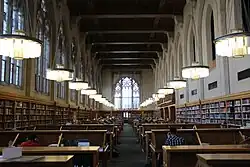 The institution is known for its scholarly orientation; a relatively large number of its graduates (9%) choose careers in academia within five years of graduation, while a relatively low number (46%) choose to work in law firms five years after graduation.[11] Another feature of Yale Law's culture since the 1930s, among both faculty and student graduates, has been an emphasis on the importance of spending at least a few years in government service.[12] A similar emphasis has long been placed on service as a judicial law clerk upon graduation.[13] Its 4.5:1 student-to-faculty ratio is the lowest among U.S. law schools.[14]