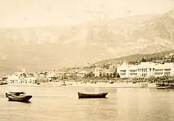 The city is located on the site of the ancient Greek colony of Yalita (Greek: Γιαλός, romanized: Gialós [ʝaˈlos̠]).[6] It is said to have been founded by Greek settlers who were looking for a safe shore on which to land. It is situated on a deep bay facing south towards the Black Sea, surrounded by the mountain range Ai-Petri. It has a humid subtropical climate and is surrounded by numerous vineyards and orchards.[7]