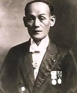 Nippon Gakki Co., Ltd. (日本楽器製造株式会社, Nihon Gakki Seizō Kabushiki gaisha; lit. 'Japan Musical Instrument Manufacture') was established in 1887 as a reed organ manufacturer by Torakusu Yamaha (山葉寅楠) in Hamamatsu, Shizuoka Prefecture, and was incorporated on 12 October 1897. In 1900, the company manufactured the first piano to be made in Japan,[5] and its first grand piano two years later. In 1987, 100 years after the first reed organ built by Yamaha, the company was renamed Yamaha Corporation in honor of its founder.[6] The company's origins as a musical instrument manufacturer are still reflected today in the group's logo—a trio of interlocking tuning forks.[7][5]