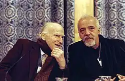 Menuhin (left) and author Paulo Coelho in 1999 at the World Economic Forum in Davos, Switzerland
