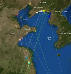 ![]() The yellow sea between Qingdao and South Korea | |||||||||||||||