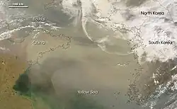 - ^ Sand storm over Yellow Sea, nasa.gov