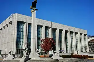 On May 10, 1950, Yonhi College graduated the first post-colonial class, however in June all progress came to a halt due to the Korean War.[21] The university suspended all courses on June 27 and recruited student soldiers. The North Korean military advanced into the Yonhi College campus and established its headquarters there. This was a cause of severe damage to the campus when the US military recaptured Seoul in September.[27] The university reopened following the recapture of Seoul, but it was once more on the run to Busan in December. In February 1951, Yonhi College joined the wartime college,[21] however, it kept an independent body and opened its own courses on October 3, 1951. On April 15, 1953, Yonhi College began its work on restoration; it returned to its campus in the fall.[28]