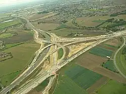 Yorkshire is drained by several rivers. In western and central Yorkshire the many rivers flow into the River Ouse which reaches the North Sea via the Humber Estuary.[56] The most northerly of the rivers in the Ouse system is the River Swale, which drains Swaledale before passing through Richmond and meandering across the Vale of Mowbray. Next, draining Wensleydale, is the River Ure, which the Swale joins east of Boroughbridge. Near Great Ouseburn the Ure is joined by the small Ouse Gill Beck, and below the confluence the river is known as the Ouse. The River Nidd rises on the edge of the Yorkshire Dales National Park and flows along Nidderdale before reaching the Vale of York and the Ouse.[56] The River Wharfe, which drains Wharfedale, joins the Ouse upstream of Cawood.[56] The Rivers Aire and Calder are more southerly contributors to the River Ouse and the most southerly Yorkshire tributary is the River Don, which flows northwards to join the main river at Goole. Further north and east the River Derwent rises on the North York Moors, flows south then westwards through the Vale of Pickering then turns south again to drain the eastern part of the Vale of York. It empties into the River Ouse at Barmby on the Marsh.[56]