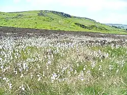 The highest mountains in Yorkshire all lie in the Pennines on the western side of the county, with millstone grit and limestone forming the underlying geology and producing distinctive layered hills. The county top is the remote Mickle Fell[66] (height 788 metres (2,585 ft) above sea level) in the North Pennines southwest of Teesdale, which is also the highest point in the North Riding. The highest point in the West Riding is Whernside (height 736 metres (2,415 ft)) near to Ingleton in the Yorkshire Dales. Together with nearby Ingleborough (height 723 metres (2,372 ft)) and Pen-y-Ghent (height 694 metres (2,277 ft)), Whernside forms a trio of very prominent and popular summits (the Yorkshire Three Peaks) which can be climbed in a challenging single day's walk. The highest point in the Yorkshire part of the Peak District is Black Hill (height 582 metres (1,909 ft)) on the border with historic Cheshire (which also forms the historic county top of that county). The hill ranges along the eastern side of Yorkshire are lower than those of the west. The highest point of the North York Moors is Urra Moor (height 454 metres (1,490 ft)). The highest point of the Yorkshire Wolds, a range of low chalk downlands east of York, is Bishop Wilton Wold (height 246 metres (807 ft)), which is also the highest point of the East Riding. The view from Sutton Bank at the southeastern edge of the North York Moors near Thirsk encompasses a vast expanse of the Yorkshire lowlands with the Pennines forming a backdrop. It was called the "finest view in England" by local author and veterinary surgeon James Herriot in his 1979 guidebook James Herriot's Yorkshire.[67]