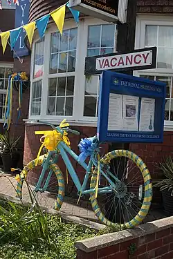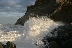 The Royal Society for the Protection of Birds runs nature reserves such as the one at Bempton Cliffs with coastal wildlife such as the northern gannet, Atlantic puffin and razorbill.[68] Spurn Point is a narrow 3-mile (4.8 km) long sand spit. It is a national nature reserve owned by the Yorkshire Wildlife Trust and is noted for its cyclical nature whereby the spit is destroyed and re-created approximately once every 250 years.[69] There are seaside resorts in Yorkshire with sandy beaches; Scarborough is Britain's oldest seaside resort dating back to the spa town-era in the 17th century,[70] while Whitby has been voted as the United Kingdom's best beach, with a "postcard-perfect harbour".[71]