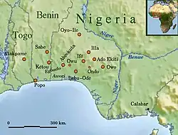 - ^ Descendant, Ekimogun. "Yoruba People Towns and Cities". Retrieved 25 January 2020.