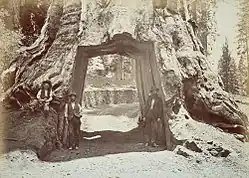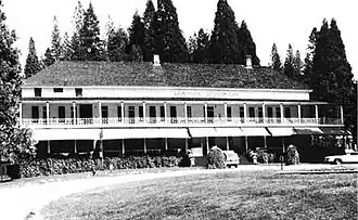 Wawona was an early Indian encampment for Nuchu and Ahwahneechee people who were captured and relocated to a reservation on the Fresno River by Savage and the Mariposa Battalion in March 1851.[41] Galen Clark discovered the Mariposa Grove of giant sequoia in Wawona in 1857. He had simple lodgings and roads built. In 1879, the Wawona Hotel was built to serve tourists visiting Mariposa Grove.[42] As tourism increased, so did the number of trails and hotels to build on it.[43]
