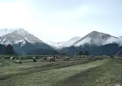 The area between the Qilian Mountains and Dunhuang lies in the western part of the modern Chinese province of Gansu, but no archaeological remains of the Yuezhi have yet been found in this area.[16] Some scholars have argued that "Dunhuang" should be Dunhong, a mountain in the Tian Shan, and that Qilian should be interpreted as a name for the Tian Shan. They have thus placed the original homeland of the Yuezhi 1,000 km further northwest in the grasslands to the north of the Tian Shan (in the northern part of modern Xinjiang).[16][28] Other authors suggest that the area identified by Sima Qian was merely the core area of an empire encompassing the western part of the Mongolian plain, the upper reaches of the Yellow River, the Tarim Basin and possibly much of central Asia, including the Altai Mountains, the site of the Pazyryk burials of the Ukok Plateau.[29]