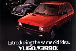 Yugo (pronounced [ˈjûɡo]), also known as the Zastava Yugo,[1] Zastava Koral (pronounced [ˈzâːstaʋa ˈkǒraːl], Serbian Cyrillic: Застава Корал), Yugo Koral, or Jugo, is a subcompact hatchback manufactured by Zastava Automobiles from 1980 until 2008, originally a Yugoslav corporation. Originally named the Zastava Jugo 45, various other names were also used over the car's long production run, like Yugo Tempo, Yugo Ciao, or Innocenti Koral. It was most commonly marketed as the Yugo 45/55/60/65, with the number referring to the car's maximum power. In the United States, it was sold as the Yugo GV (and sub-versions).