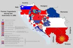 Former Yugoslavia during war front lines in 1992 - Flag map of yugoslav wars