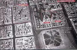 The Parián was a set of shops in the southwest corner of the plaza used to store and sell luxury and exotic products brought by the Manila galleons from Asia, and later, luxury goods brought by galleons from Europe. This was opened in 1703 and earned a substantial income for the city council from shop rent,[12] as well as turning the plaza into an "emporium of commerce"[13] and the "center of Mexico's richest trade,"[11] as characterized by contemporary accounts. The Parián existed for around 140 years, before it was looted and destroyed during the Parián Riots of 1828.[14][13]