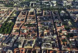 After the 1880 Zagreb earthquake,[57] up to the 1914 outbreak of World War I, development flourished and the town received the characteristic layout which it has today. The first horse-drawn tram dated from 1891. The construction of railway lines enabled the old suburbs to merge gradually into Donji Grad, characterized by a regular block pattern that prevails in Central European cities. This bustling core includes many imposing buildings, monuments, and parks as well as a multitude of museums, theatres, and cinemas. An electric-power plant was built in 1907.