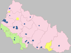 | 1 The Hungarian language has some minority rights in seven villages of the Mukachivskyi Raion.[9] | |