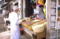 In 1698, Zanzibar came under the influence of the Sultanate of Oman.[27] There was a brief revolt against Omani rule in 1784. Local elites invited Omani merchant princes to settle in Zanzibar in the first half of the nineteenth century, preferring them to the Portuguese. Many locals today continue to emphasise that indigenous Zanzibaris had invited Seyyid Said, the first Busaidi sultan, to their island.[28] Claiming a patron–client relationship with powerful families was a strategy used by many Swahili coast towns from at least the fifteenth century.[28]