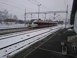 Mass transit provides intra-city and inter-city connections in form of bus and rail. Zaprešić is a major railway intersection, with railways leading west to Slovenia (Corridor X), north to Zabok, and Kumrovec (Corridor Xa) and east to the main regional railway hub Zagreb. Croatian Railways services the Zaprešić train station with major interstate trains going to the west, but also with the suburban line Savski Marof–Zagreb Main Station–Dugo Selo. The town is serviced by two bus companies: the regional Zagrebački električni tramvaj (ZET) and local Meštrović prijevoz. ZET operates line 172 to Zaprešić, which starts at the Črnomerec bus terminal in Zagreb and runs every 8 to 15 minutes during day, and at irregular intervals during the night.[18][60] Lines 176 and 177 run to the Zaprešić suburban municipality of Bistra.[61] Meštrović prijevoz, the main intra-city bus company of Zaprešić, operates bus lines connecting Zaprešić and all municipalities in its metropolitan area.[18]