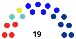 Despite the settlement of Zaprešić's long history, only with the founding of the Town of Zaprešić on 30 November 1995 did it have its own elected representatives.[52] The towns administration includes two tiers of power: a mayor and a town council. The town council is elected each four years. The mayor (Croatian: gradonačelnik) has executive power. He is elected directly by the voters. Current Mayor is Željko Turk (Croatian Democratic Union—HDZ, elected in 2006, re-elected 2009, 2013 and 2017), whose deputy's are Damir Benčević and Alan Labus.[53] Zaprešić is part of the 1st Croatian electoral district, which consists of western Zagreb, and the Zaprešić metropolitan area.[4]