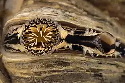 The species was first described in 1769 by German zoologist Peter Simon Pallas in the Ural, Volga, and Dnieper Rivers.[6] Zebra mussels get their name from a striped pattern commonly seen on their shells, though it is not universally present. They are usually about the size of a fingernail, but can grow to a maximum length around 50 mm (2 in).[7][8] Their shells are D-shaped, and attached to the substrate with strong byssal fibers, which come out of their umbo on the dorsal (hinged) side.