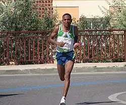 He opened 2005 with a second win in the European Clubs' Cross Country Cup.[17] He won his first World Cross Country Championship medal soon after, finishing second to Bekele to take silver at the 2005 edition.[1] On the track, he recorded a 5000 m personal best of at the Qatar Grand Prix in Doha,[26] and qualified to compete at the World Championships in both the 5000 and 10,000 m. At the 2005 World Championships, he broke the national record in the 10,000 m final, but his time of 27:12.82 was only enough for sixth.[27] The 5000 m final held little reprieve for the Eritrean as he finished in second last position.[28] He ended the season on a positive note, however, improving his 10,000 m best to 27:04.70 at the Memorial Van Damme,[29] and winning the Great North Run with a world best time of 59:05 – which was only his second outing over the half marathon distance.[1][30]