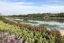 The city lies on the southern bank of the Yellow River.[9] Zhengzhou is a major hub of China's domestic and international transportation network. For example, it is connected to Europe[10] and has an international airport.[11] Zhengzhou is a National Civilized City and a State-list Famous Historical and Culture City.[12] As of 2020, there are two World Cultural Heritage Sites in Zhengzhou. The Zhengzhou Commodity Exchange (ZCE) is China's first futures exchange. Zhengzhou Airport Economy Zone is China's first Airport Economy Zone.[13]