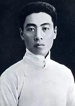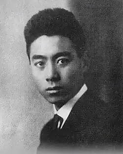 Zhou's diaries and letters from his time in Tokyo show a deep interest in politics and current events, in particular, the Russian Revolution of 1917 and the Bolsheviks' new policies. He began to read avidly Chen Duxiu's progressive and left-leaning magazine, New Youth.[25] He read early Japanese works on Marx, and it has been claimed that he even attended Kawakami Hajime's lectures at Kyoto University. Kawakami was an important figure in the early history of Japanese Marxism, and his translations and articles influenced a generation of Chinese communists.[26] However, it now seems unlikely that Zhou met him or heard any of his lectures.[27] Zhou's diaries also show his interest in Chinese student protests in opposition to the Sino-Japanese Joint Defense Agreement in May 1918, but he did not actively participate in them or return to China as part of the "Returning Home Movement".[28] His active role in political movements began after his return to China.