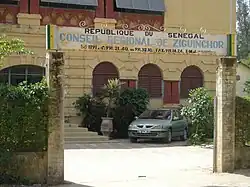 A number of buildings in the town have been classified by government decree as historic, the cemetery and several government buildings, like the Ziguinchor Regional Council.[12]