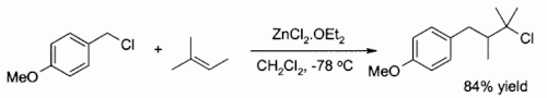 Zinc chloride also activates benzylic and allylic halides towards substitution by weak nucleophiles such as alkenes:[53]