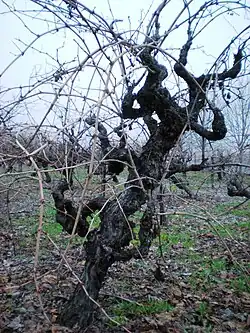 Archaeological evidence indicates that domestication of Vitis vinifera occurred in the Caucasus region around 6000 BC, and winemaking was discovered shortly after that.[6] Cultivation of the vine subsequently spread to the Mediterranean and surrounding regions.