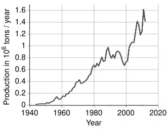 Approximately 900,000 tonnes of zirconium ores were mined in 1995, mostly as zircon.[27]