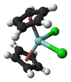 - ^ Wilkinson, G.; Birmingham, J. M. (1954). "Bis-cyclopentadienyl Compounds of Ti, Zr, V, Nb and Ta". Journal of the American Chemical Society. 76 (17): 4281–4284. Bibcode:1954JAChS..76.4281W. doi:10.1021/ja01646a008.; Rouhi, A. Maureen (2004-04-19). "Organozirconium Chemistry Arrives". Chemical & Engineering News. 82 (16): 36–39. doi:10.1021/cen-v082n016.p036. ISSN 0009-2347. Retrieved 2008-03-17.