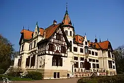 The Lešná Castle is located in the village of Štípa. It was built in the Neo-Gothic, Neo-Renaissance and Neo-Baroque styles in 1887–1893. It is one of the youngest aristocratic residences in Moravia.[27] The castle was built for the Seilern-Aspang family on the site of an older castle from the 18th century. Today the castle is open to the public and there are collections of unique and historically valuable objects.[28] The castle is located inside the Zlín-Lešná Zoo complex. It is the second most-visited zoo in the country, and as of 2022, it was overall the third most visited tourist destination in the country.[29]