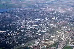Zoetermeer (Dutch pronunciation: [ˌzutərˈmeːr] ⓘ) is a city in the Western Netherlands, in the province of South Holland. The municipality covers an area of 37.05 km2 (14.31 sq mi) of which 2.60 km2 (1.00 sq mi) is water. A small village until the late 1960s, it had 6,392 inhabitants in 1950.[5] By 2023 this had grown to 126,998, making it the fourth largest population centre in the province of South Holland, after Rotterdam, The Hague and Leiden.[6] While now a city in its own right, Zoetermeer started out as a suburb of The Hague and is still a part of the Greater The Hague urban area.