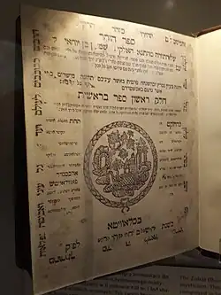 ![]() Title page of the first printed edition of the Zohar, Mantua, 1558 | |