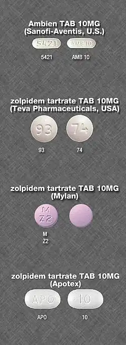 - ^ a b c d e f g h i j k "Zolpidem (Monograph)". The American Society of Health-System Pharmacists. 27 April 2023. Archived from the original on 16 March 2018. Retrieved 10 March 2024.