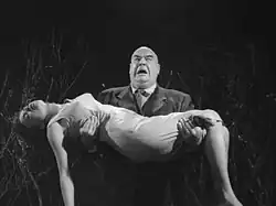 Tor Johnson as a zombie with his victim in the cult movie Plan 9 from Outer Space (1959)