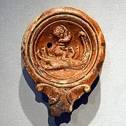 Roman oil lamp dating from 1st–3rd century AD depicting a zoophilic act