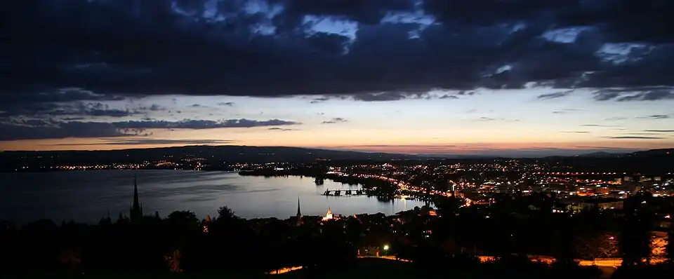 The municipality had a total population of 30,934 on 31 December 2020.[2] The official language of Zug is the Swiss variety of Standard German, but the main spoken language is the local variant of the Alemannic Swiss German dialect.