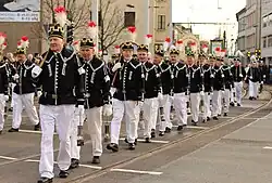 During World War II, in 1942, a Nazi show trial of the members of the Czarny Legion Polish underground resistance organization from Gostyń was held in Zwickau, after which 12 members were executed in Dresden, and several dozen were imprisoned in Nazi concentration camps, where 37 of them died.[9] In May 1942, five Polish students of the Salesian Oratory in Poznań, known as the Poznań Five or five of the 108 Blessed Polish Martyrs of World War II, were imprisoned in Zwickau, before being executed in Dresden.[10] A subcamp of the Flossenbürg concentration camp was located in Zwickau, whose prisoners were mostly Poles and Russians, but also Italians, French, Hungarians, Jews, Czechs, Germans and others.[11]