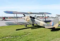 The de Havilland DH.82 Tiger Moth is a 1930s British biplane designed by Geoffrey de Havilland and built by the de Havilland Aircraft Company. It was operated by the Royal Air Force (RAF) and other operators as a primary trainer aircraft. In addition to the type's principal use for ab initio training, the Second World War had RAF Tiger Moths operating in other capacities, including maritime surveillance and defensive anti-invasion preparations; some aircraft were outfitted to function as armed light bombers.