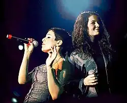 On 19 May 2016, the duo met publicly again at the 25th anniversary celebration of the children's musical group Neposedy, which both were a part of before the formation of t.A.T.u. There, together with the children, Katina and Volkova unexpectedly performed "Nas Ne Dogonyat" ("Not Gonna Get Us").[115] However, the artists appeared distant and detached on stage, keeping a clear physical and emotional distance and largely avoiding any interaction with each other throughout the event.[116]